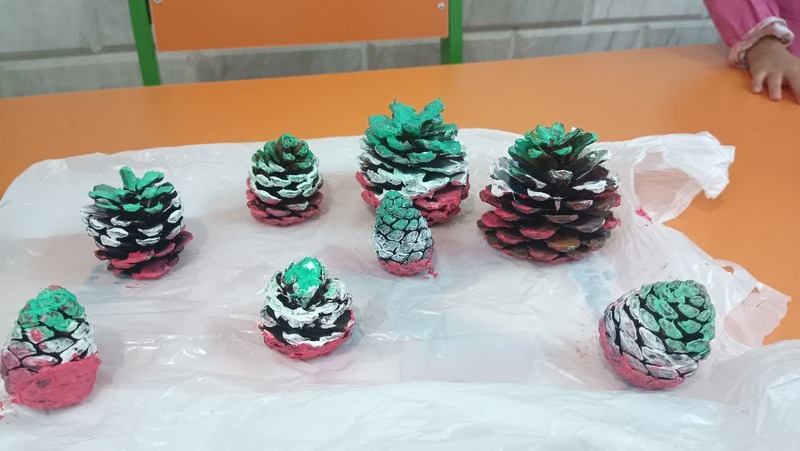 ۶- طراحی کاج (سری دوم): با آبرنگ و طرح زدن پرچم مقدس ایران بر روی میوه کاج